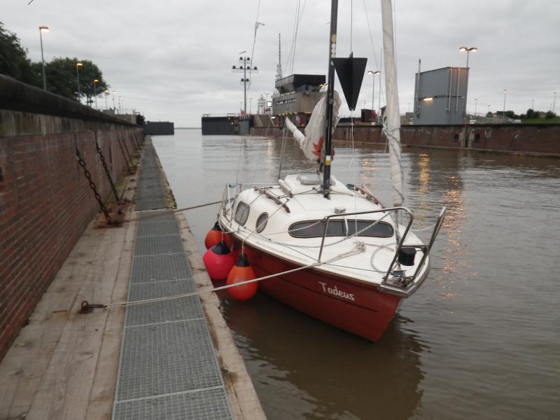 Anhang 23930 Der Hafen liegt im Watt und man muß den Weg schon sehr genau einhalten. Anhang 23931 Anhang 23932 Um wegen dem Verkehrstrennungsgebiet für die "paar Meter" nicht auf die andere Seite wechseln zu müssen fahren wir knapp außerhalb des Fahrwassers zur Schleuse. An der Tonne sieht man recht gut, daß wir mit "Rückenwind" der Tide fahren. Anhang 23933 Schon sind wir drüben kurz vor der Schleuse. Anhang 23934 Dort inspizieren wir erst mal ob mein Schlepper noch gut liegt. :biggrin5: Anhang 23935 Nach etwa 1,5 Stunden Fahrt sind wir bereit zu Schleusen. Die Schleusen am NOK sind schön zu fahren. Es gibt Schwimmstege an denen man festmachen kann und die Schleusung bemerkt man fast nicht so sanft geht das. Wir werden alleine geschleust. Anhang 23936 Anhang 23937 Anhang 23938 Auf geht zu knapp 100 km Kanalfahrt ..... Anhang 23939 |