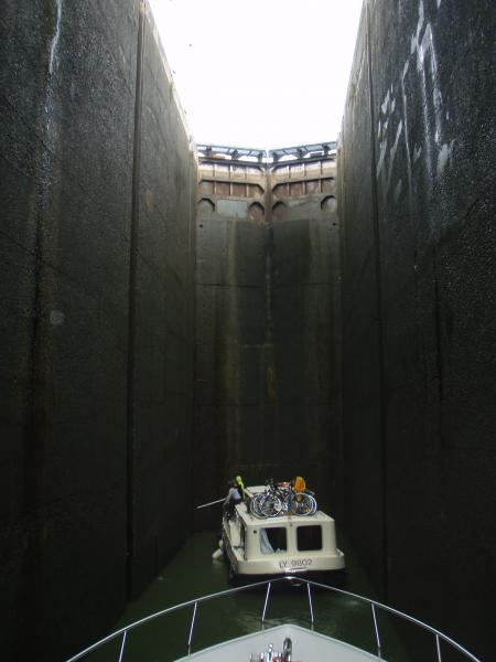 wennst dich a mal trauen wuerdest und nach Norden fahren datast und dann auch noch in den RMDK - dort gibt es Schleusen bis 29 m Hubhoehe .... da faehrst unten durch ein Tor rein .....