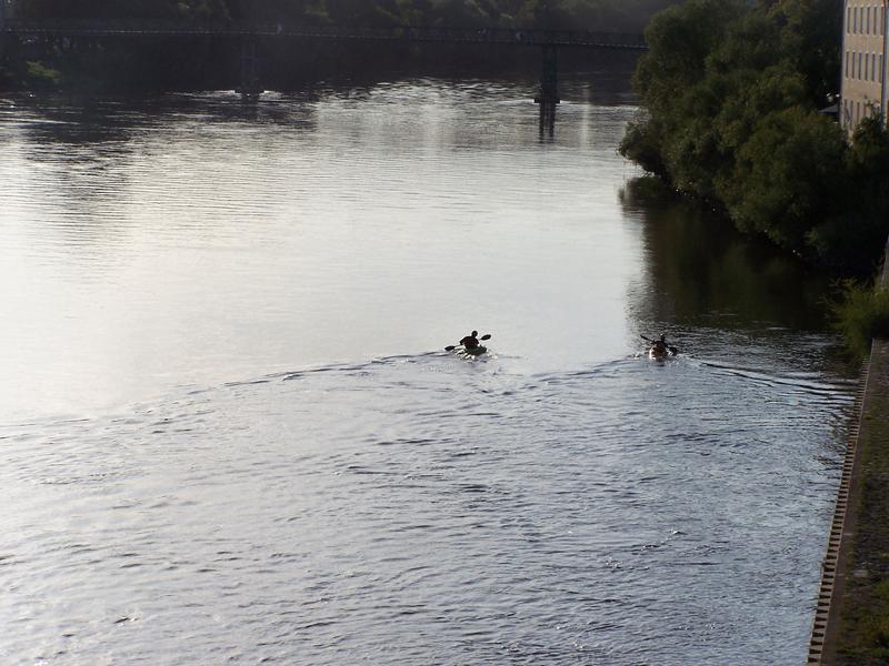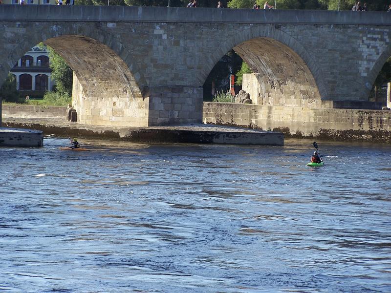 Interessant die beiden Kajakfahrer, die da um die Brücke herum sind und dann auch noch zu Berg gefahren sind......