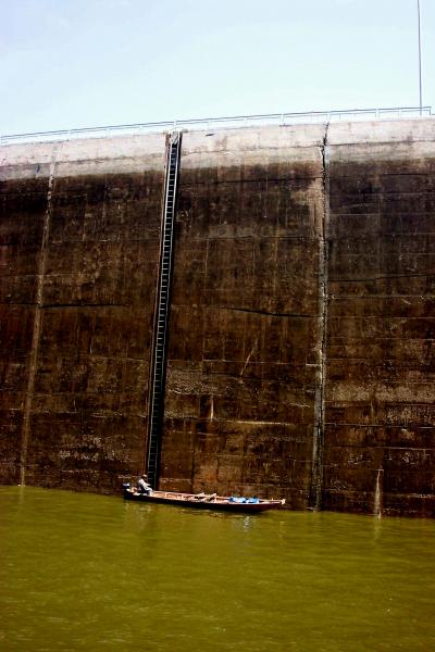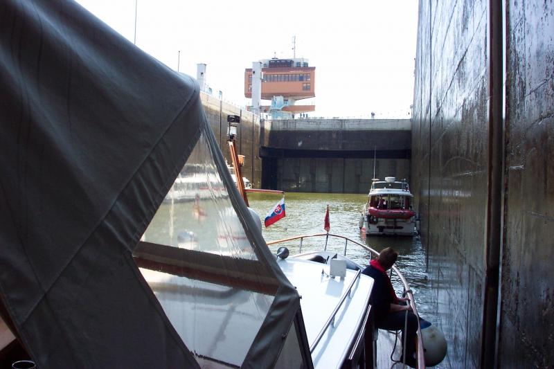 Gabcikovo ist ein Kanal, der eine sonst nicht schiffbare Schleife überbrückt. Am Ende die Schleuse.