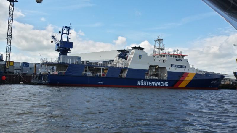 Naja die fahren Hochsee auch bei Orkan, dass ist ein Neubau von Insgesamt 3 Neubestellungen vom Bund. Speziel für Nord und Ostsee.. Hubschrauberdeck für NH 90 sowie Super Puma.