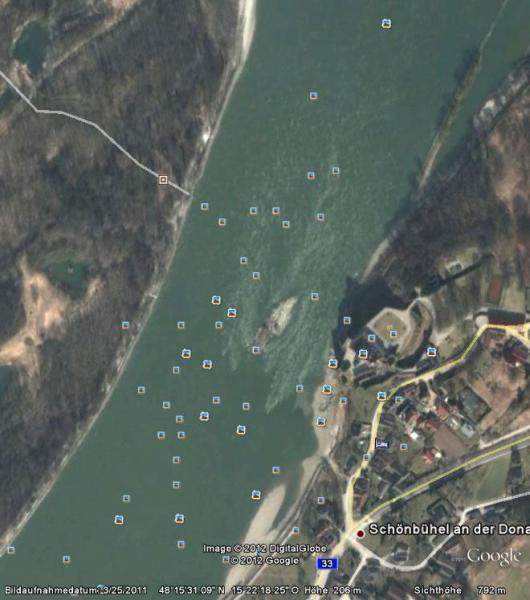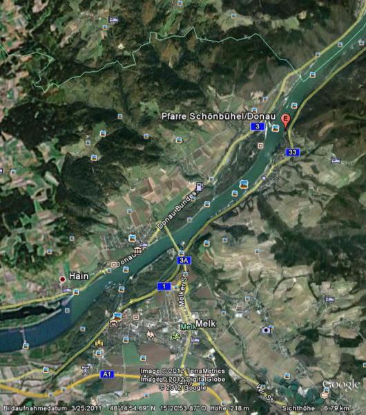 Rechtskurve? Die Strecke ist doch von Melk aus fast schnurgerade. Und die nächste Kurve kommt erst hinter dem Kloster Einsiedel und ist auch ganz harmlos. Hier Bilder aus Google Earth: